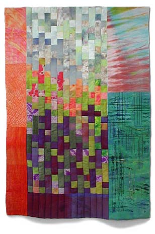 | The contemporary art quilt movement has been growing internationally for more than two decades. Leaders in the movement are responsible for encouraging those people working in the fiber arts mediums to step away from traditional patchwork quilting, and patterns and designs, in order to develop personal, interpretive, and innovative works of art. | ||||||||||||||||||||||||||
