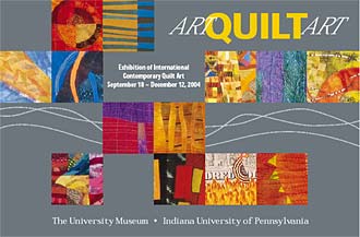 | ARTQUILTART will bring to the regions where it is shown the works of more than 40 artists from seven countries worldwide. Each has been invited by Ned Wert, the exhibition curator, and former director of the University Museum, Indiana University of Pennsylvania. Included in the exhibition are works by world-renowned art quilters as well as newly recognized artists in the medium. | ||||||||||||||||||||||||||