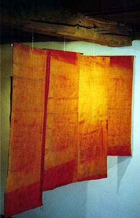 | Group hanging of 4 silk wall panels at 1999 exhibition in Fehraltorf, Switzerland | ||||